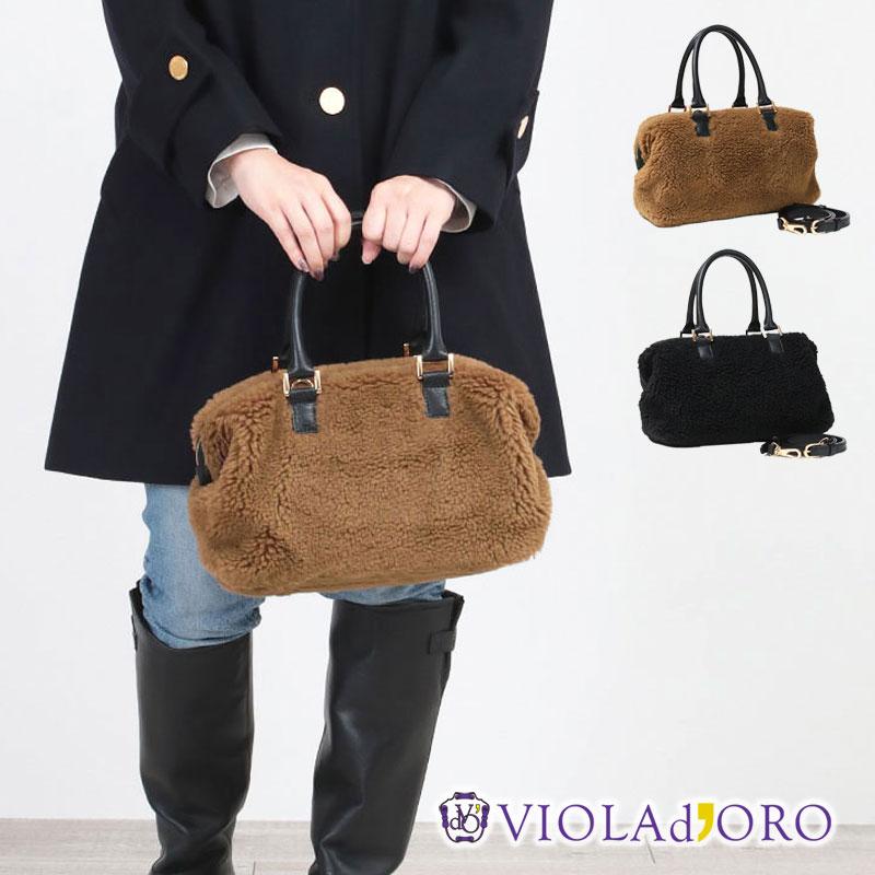 - レディース > バッグ > 美品 VIOLAD'ORO 本革×ファー ワンハンドルコンビバッグ ハンドバッグ VIOLAd'ORO(ヴィオラドーロ) エコファー ボストンバッグ 2way