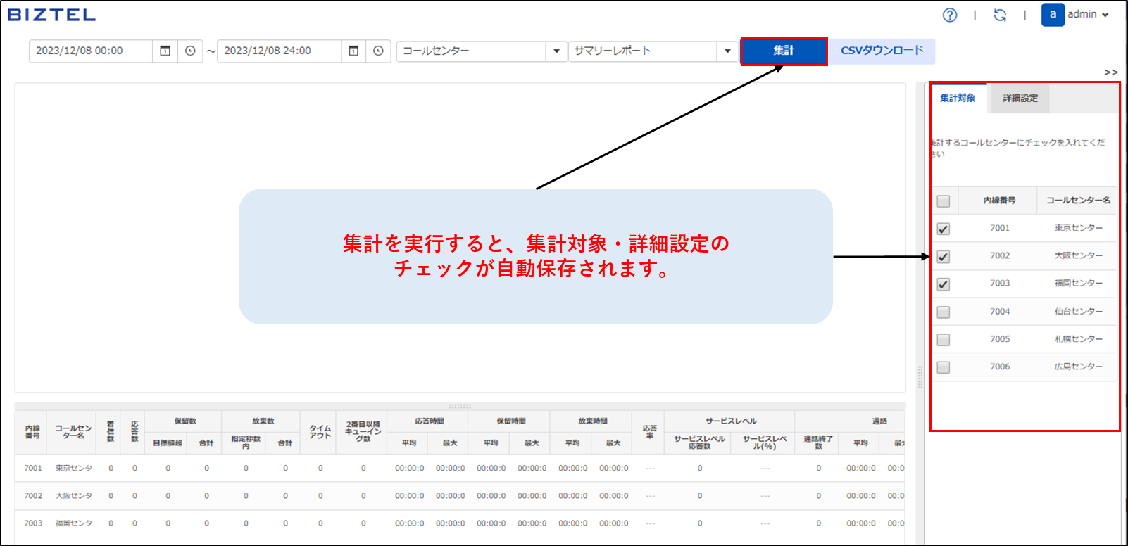 | メーカー | 確認ページ3 3.コールセンターレポート:着信(3.10.X以降) |