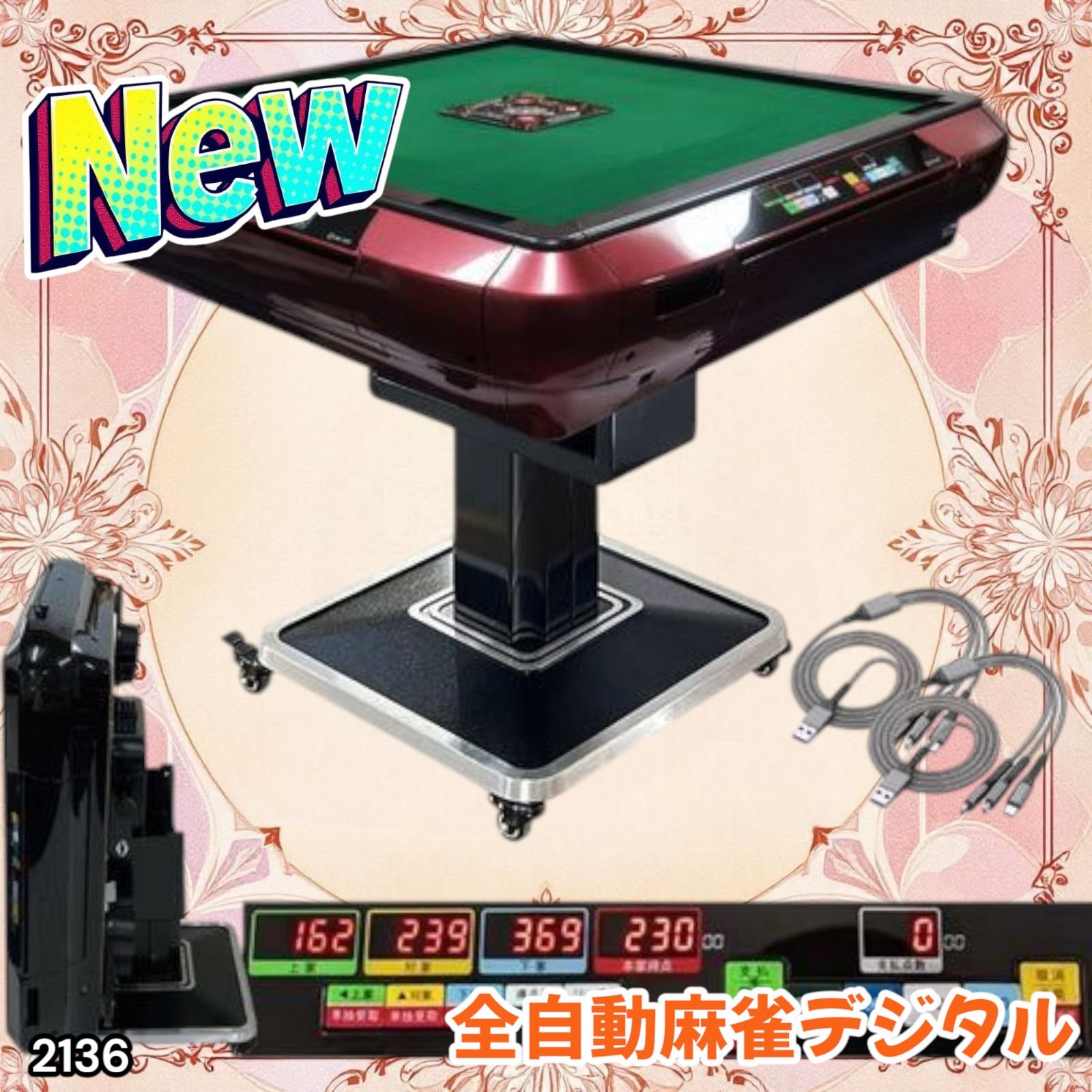 | 商品の特徴 | R2136全自動麻雀卓 家庭用 折りたたみ 麻雀卓 デジタル点棒計算 全自動。全自動麻雀卓家庭用 折りたたみ 麻雀卓 デジタル点棒計算 全自動卓。全自動麻雀卓 折りたたみ デジタル点棒計算 アルミ製脚 ブラック28mm。◆ご閲覧ありがとうございます!万が一初期不良の場合は対応させていただきます。◆北海道、沖縄、離島への配送は別途郵送料がかかります。対象の方はコメント欄にコメントをお願いします。◆商品説明◎カラーは・ブラック【製品寸法】・約93×93×77cm(台下57cm)・(折りたたみ時)約56×106cm・天板サイズ:約73×73cm・牌サイズ:28mm・本体重量:約77kg※組み立ては2人以上を推奨しております。【付属品】・麻雀牌×2セット・牌トレー(※2024年7月生産分より牌収納袋に変更)・iPhone/タイプC対応充電ケーブル×2本・麻雀台専用カバー・点棒・東南マーク1枚・焼き鳥マーク4枚・クリーンボール・掃除用ブラシ※ブラシの色はランダムです。【商品詳細】■面倒な点数計算不要!より快適に麻雀が楽しめる『デジタル点数表示付き』全自動麻雀卓!■雀荘の感覚を自宅で楽しみながら、電気代やプレイ料金を気にしなくても良い、コスパ抜群の全自動麻雀卓です。■キャスター付きで移動もラクラク♪遊んだ後の片付けもラクラク行えます!■マンションやアパートなどの集合住宅でも遊べる『静音』設計。■ドリンク&スマホホルダー付き。USB充電ケーブルも付属しておりますので、充電しながら麻雀を楽しむことが可能です。■土台(キャスター側)と卓を組み合わせる際、電源スイッチや電源ケーブルの差込口が隠れないように『向き』にご注意ください。■製品組み立て用のネジは予備分として、多めに入れさせていただいております。ONE STEP 雀鳳 全自動麻雀卓 麻雀卓 折りたたみ 全自動 家庭用 麻雀台 自動 点数表示 電動麻雀卓 全自動雀卓 28mm三人打ち 麻雀 対応機種 三麻 麻雀テーブル 麻雀台 マージャン卓 麻雀セット 点棒 得点 父の日 敬老の日 プレゼント3。全自動麻雀卓 家庭用 折りたたみ デジタル点棒計算 ワインレッド 2136。希少品 雀鬼 虎牌 背茶 家紋 菊紋 昭和レトロ 麻雀牌。高級麻雀牌セット ミズノ 丸一工業 法悦 状態良いです。骨面竹背麻雀牌 ケース付 東Y7-0306①トヒト。任天堂 麻雀 役満 鳳凰。1・家庭用全自動麻雀卓。激レア!高級麻雀 藝夢堂 マージャン牌 昭和 レトロ 赤3ピン。激レア!高級麻雀 藝夢堂 マージャン牌 昭和 朱雀牌 レトロ。麻雀卓 りく。【原則配送設置込/送料込】超美品 アモス ヴィエラ。【にょん】全自動麻雀卓用 点数表示 WakWak枠/天枠+点棒+牌 | ||