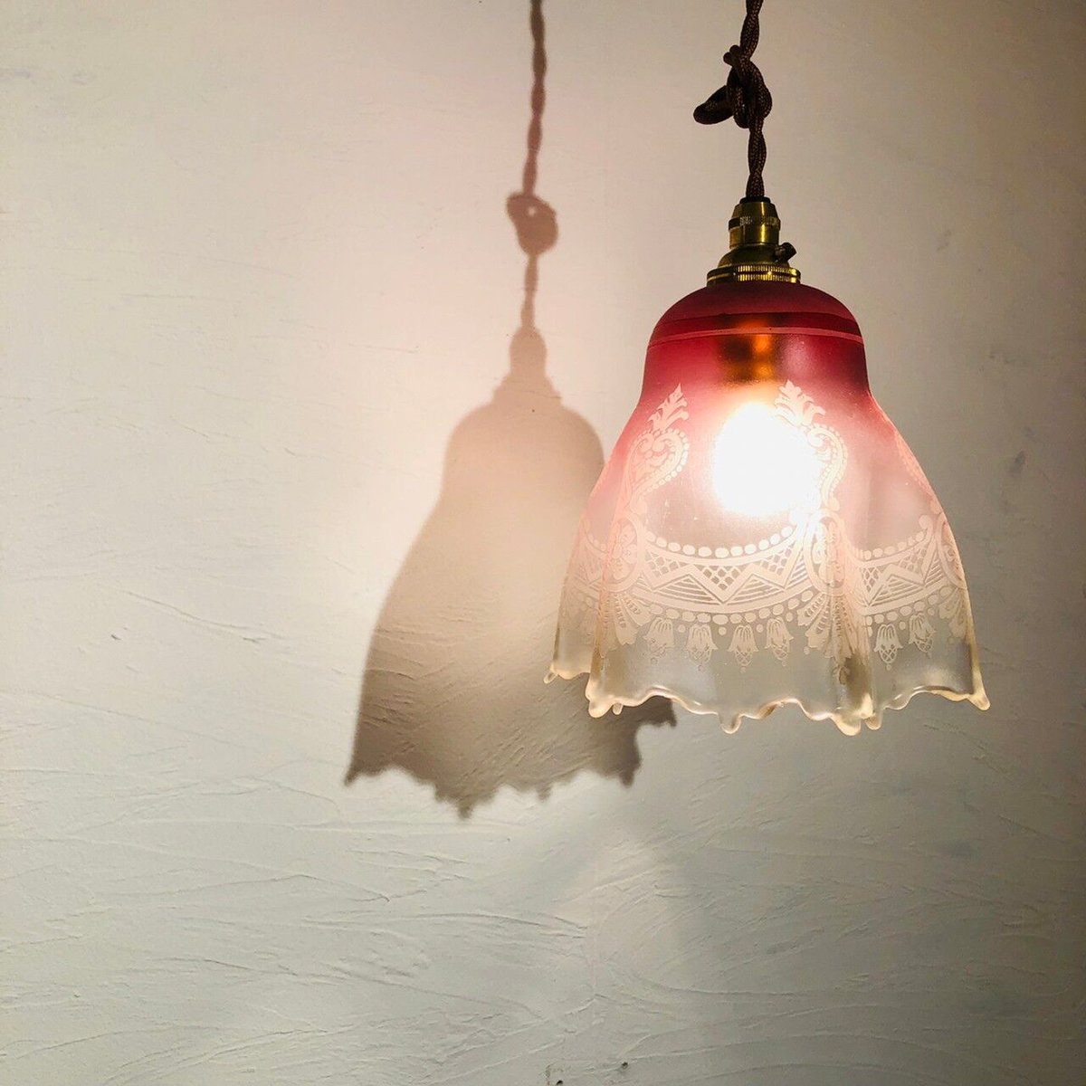 | メーカー | 英国 美しいアンティーク ビクトリアン クランベリー エッチングガラスシェード 英国 |
