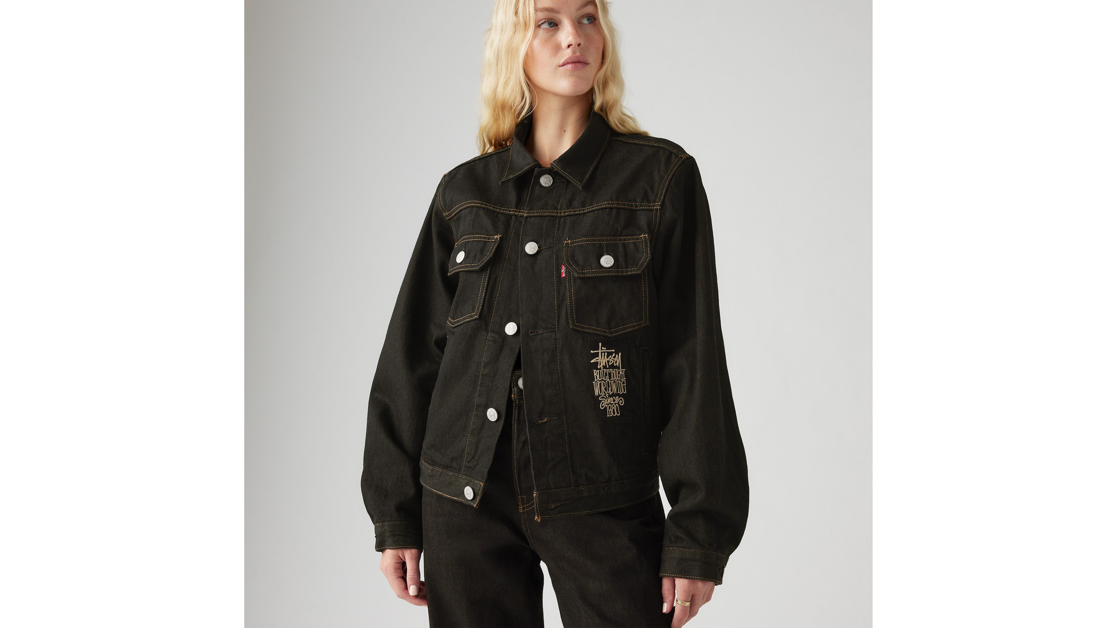 Stussy x levi’s crispy rinse Jacket M Stüssy & Levi's® Crispy Rinse Trucker Jacket - Black | Levi's® US