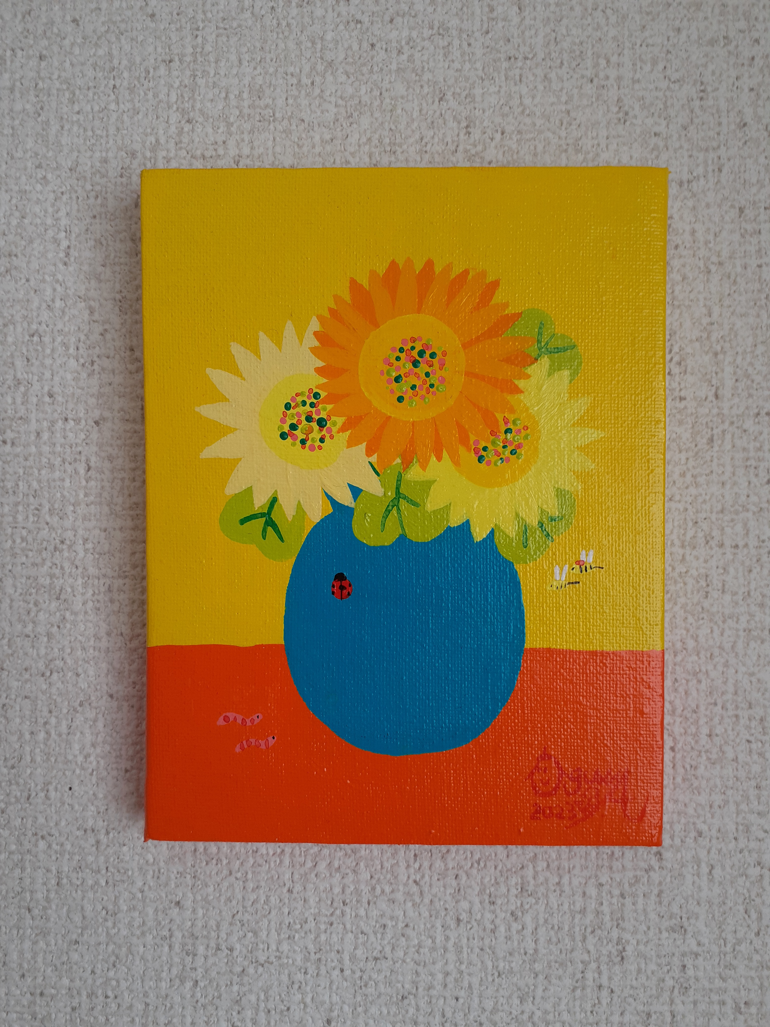 - 美術品・アンティーク・コレクション > 絵画 > はしぐちみよこ「ひまわりの風」油彩F3号 画面右下・キャンバス裏に直筆サイン有り はしぐちみよこ「ひまわりの風」油彩F3号 画面右下・キャンバス裏に
