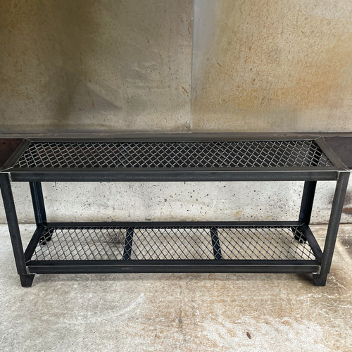 | 商品の特徴 | 裏側補強]アイアンシューズラック[幅900㎜]インダストリアル 植物棚。裏側補強]アイアンシューズラック[幅900㎜]インダストリアル 植物棚。裏側補強]アイアンシューズラック アイアン家具 植物棚 シェルフ 棚。◆納期◆受注製作の為、納期を気にされる方は購入前に質問より納期確認をお願いいたします。人気のシューズラックの各棚の網裏から2本ずつ補強を追加しよりアイアンの重厚さを感じさせます。4本の脚を違うサイズの素材を使用し斜めにカットする事でより重厚感を強調しました。靴は男性用の靴なら8足ほど置く事が出来ます。こちらは締め込むと足の内側に隠れます。◆サイズ◆幅 約900㎜/高さ 約340㎜/奥行 約300㎜/棚間隔 高さ 240㎜◆材質◆アイアン(鉄)、エキスパンドメタル◆塗装◆無塗装(オイルフィニッシュ)◆備考◆※ハンドメイドの為、素材色の濃淡、溶接時の歪みやスパッタの付着、錆や小傷、サイズの誤差など出る場合がございます。⭕️全商品はこちらをご覧下さい⭕️#STEELINDUSTY。高さ140㎝ アイアンラック 植物棚 シューズラック 店舗展示棚 フラワー。ご覧頂きありがとうございます。無印良品 ステンレスユニットシェルフ(高さ83cm/棚板3枚)。無印良品 ステンレスユニットシェルフ オーク材。補強を加えた事でテレビなど重い物を載せる事も可能。【新品未使用】MUJI スチールユニットシェルフ 引出し2段 オーク材(1段)。スチールラック・メタルラック chikky。あえて溶接面を残し無塗装にする事により無骨な表情を活かしつつ、経年変化(エイジング)を楽しめます。ドローアライン DRAW A LINE 本体・トレー・フック 3点セット。【良品】無印良品 ステンレスユニットシェルフ オーク材 中 ワードローブバー付。足にはガタ付き防止調整ネジ付き。無印良品 ステンレスユニットシェルフ 追加棚 84cm。ねこねこさん 専用ページ(アーネストワン )フレームDIYラボ。またアガベなど植物棚や、ガレージの荷物棚にしても無骨なデザインが部屋の雰囲気を醸し出します。みきてぃ様 シェルフ。訳あり カッシーナ シャインキャビネット サイドボード Cassina。※サイズ変更などございましたらお問い合わせ下さい。ホームエレクター ウッド&ワイヤーシェルフ ブラウン | ||