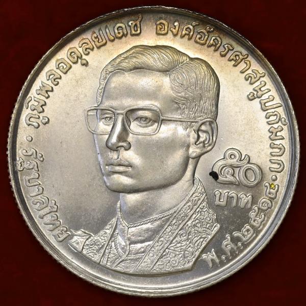 タイ王国ラーマ9世世界仏教徒連盟20周年記念 50バーツ銀貨1971年 高鑑定 タイ 1971年 50バーツ 大型銀貨 ラーマ9世 仏教徒同胞20年 : エルズ